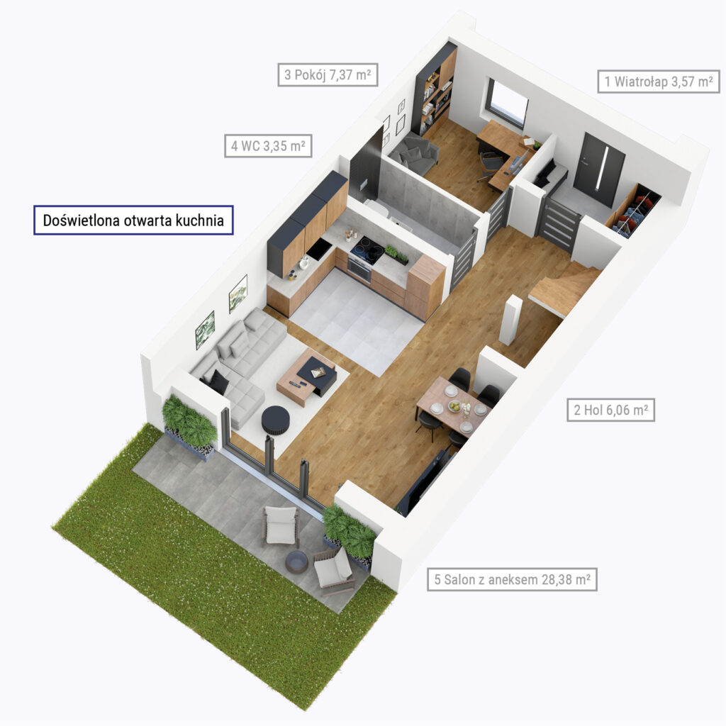 Osiedle Zatorze to miejsce, które łączy przytulny klimat z nowoczesną architekturą. Inwestycja obejmuje 34 funkcjonalne apartamenty w zabudowie szeregowej. Każdy z nich ma ok. 94 m² powierzchni i cechuje się przemyślanym układem pomieszczeń. Na parterze znajduje się przestronny salon z otwartą kuchnią, łazienka, wiatrołap oraz pokój, który można zaaranżować np. jako gabinet do pracy. Piętro to trzy duże pokoje i druga łazienka. Układ ten będzie zapewniał codzienny komfort użytkowania wszystkim domownikom. Każdy apartament ma również indywidualny ogródek, do którego wychodzi się z salonu. To przestrzeń, umożliwiająca relaks na świeżym powietrzu i świetnie sprawdzająca się jako miejsce spotkań z bliskimi lub zabaw z dziećmi.